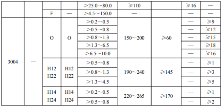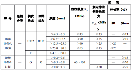 注:①1070,1070A,1060,1050,1050A,1100,1145,1200,3003,3004,3A21,8A06可供應寬度小于400mm的板材,但尺寸偏差按400mm寬度的板材檢查,當供應寬度為大于400mm至1000mm時,其尺寸偏差按1000mm寬度的板材檢查;可供應長度小于1000mm的板材,其尺寸偏差按長度為1000mm的板材檢查。